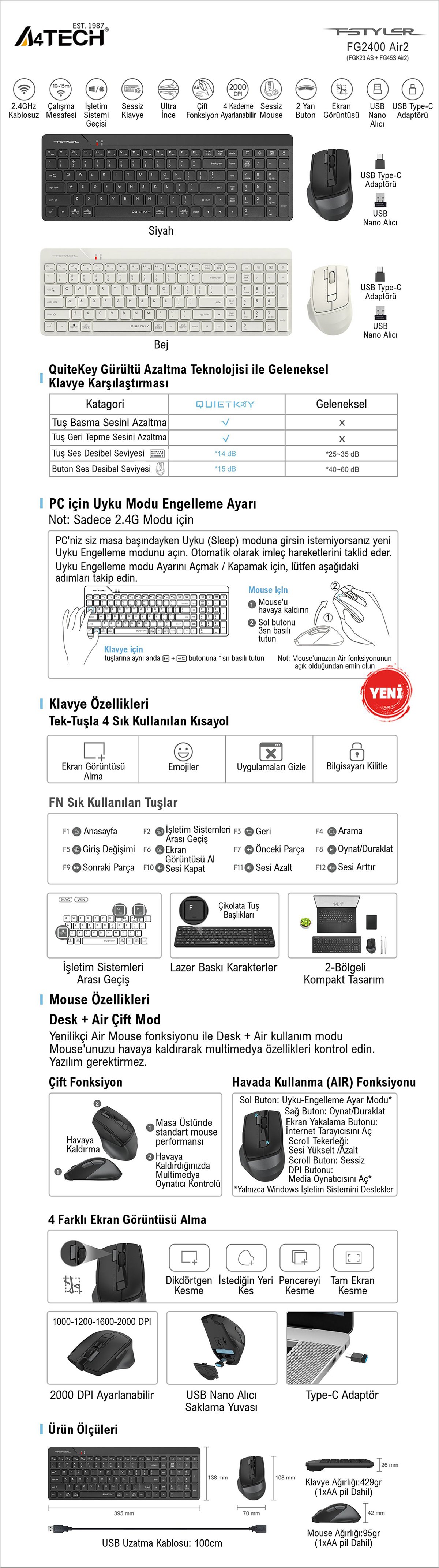 A4Tech A4 Tech FG2400 Aır2 2.4g Syh Q Fn-Mm Sessiz Set