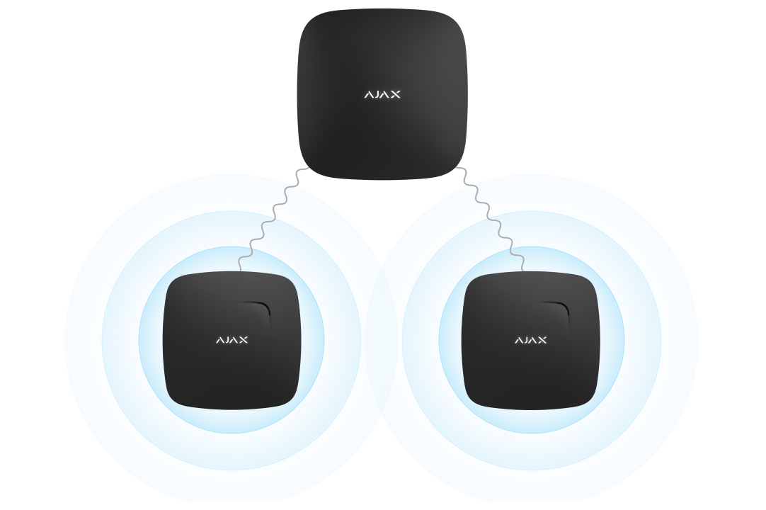 Dedektörlerden en az biri bir alarm kaydederse, sistemdeki tüm yangın dedektörleri yerleşik sirenleri açar. Birbirine bağlı yangın dedektörleri alarmı, bir "hub-dedektör" yoklama aralığı süresi içinde etkinleştirilir.
