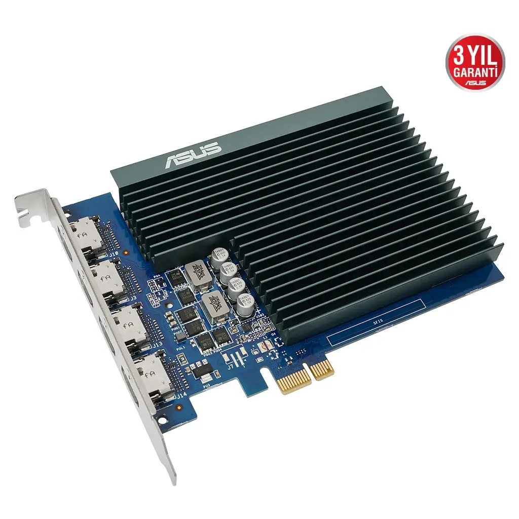 Asus GeForce GT 7304 HDMI yuvası ve pasif soğutması ile birlikte ASUS GeForce GT 730, çoklu monitör kullanımını ve sessiz çalışmayı aktif hale getiriyor.