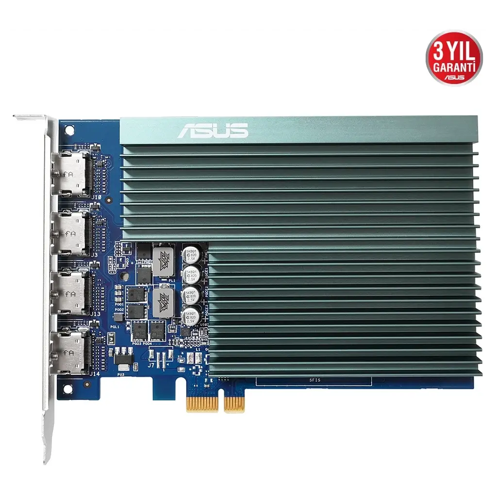Küçük Bir Kartta Büyük VerimlilikASUS GeForce GT 730, sessiz çalışmayı ve çoklu monitör verimliliğini artırmayı sağlayan, pasif olarak soğutulan tek yuvalı bir ekran kartıdır.