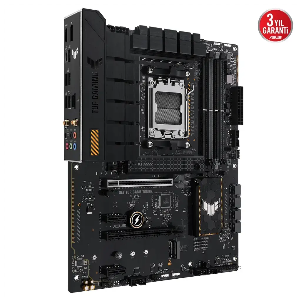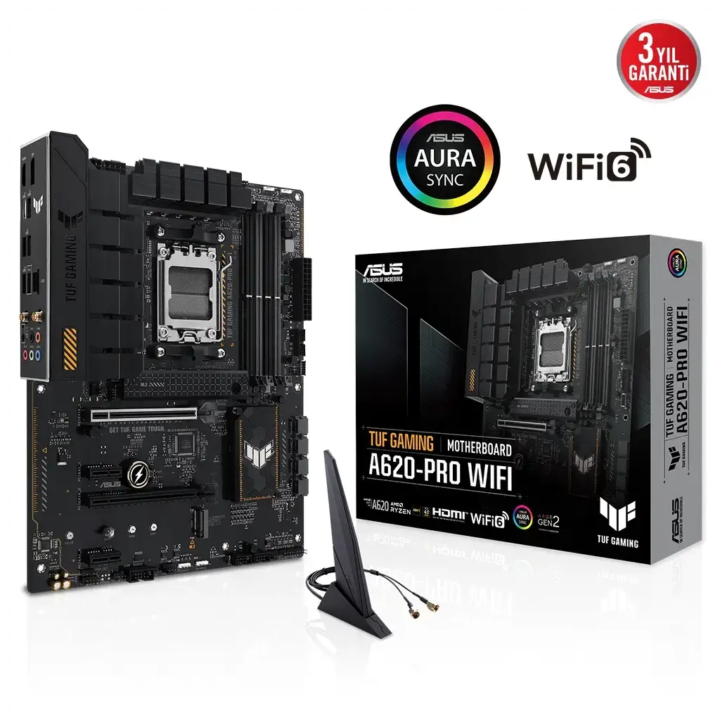 TUF GAMING A620-PRO WIFIASUS TUF GAMING A620-PRO WIFI, en yeni AMD Ryzen 7000 serisi işlemcilerin en önemli unsurlarını oyunlara yönelik özellikler ve kanıtlanmış dayanıklılıkla bir araya getiriyor. Askeri sınıf bileşenler, gelişmiş güç çözümü ve kapsamlı soğutma sistemiyle donatılan bu anakart, oyun maratonları için kararlı ve sağlam performans ile beklentilerin ötesine geçiyor. TUF GAMING anakartlar, diğerlerinin başarısız olabileceği koşullarla başa çıkabileceklerini garantilemek için zorlu testlerden geçiriliyor. Bu model estetik bakımdan, TUF GAMING serisini tanımlayan güvenilirliği ve kararlılığı yansıtmak için geçişli siyah ve geometrik tasarım öğelerini bir araya getiriyor.
