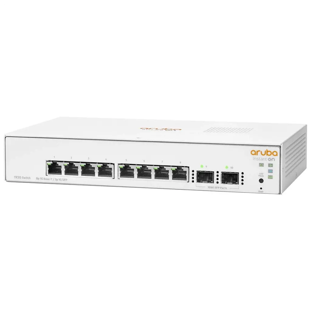 Aruba Instant On 1930 switch serisi, daha düşük güç tüketimi için enerji tasarruflu Ethernet’i ve daha sağlam çalışma için gelişmiş bir özellik setini destekler.