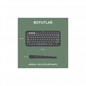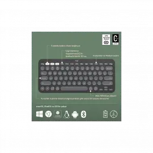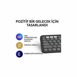 Logıtech K380s, Pebble Keys 2, Siyah, 920-011859, Bluetooth, Türkçe, Q, Multimedya, Mini Klavye