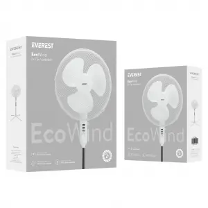 Everest Fan10, Beyaz, Ecowind, 3 Kademeli Hız, 40cm 3 Kanat Pervane Ve Çerçeve, 45w, Otomatik Salınım, Yükseklik Ayarlı Vantilatör