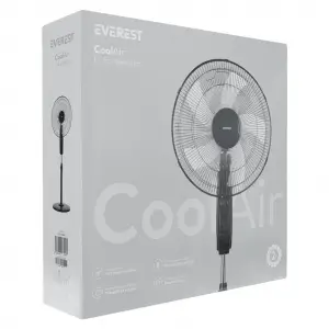 Everest Fan11, Siyah, Coolair, 3 Kademeli Hız, 40cm 5 Kanat Pervane Ve Çerçeve, 45w, Otomatik Salınım, Yükseklik Ayarlı Vantilatör