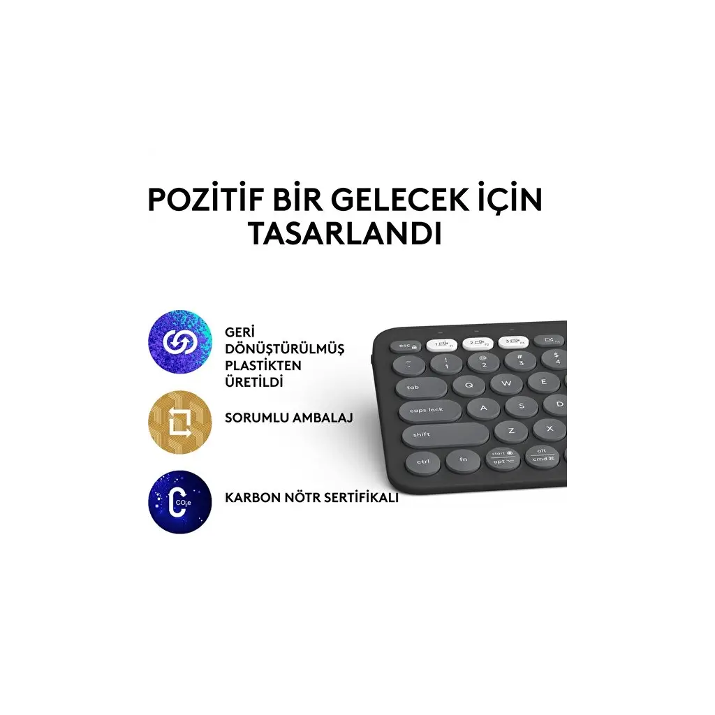Pebble Keys 2 K380s ile tüm dünya kim olduğunu görsün. Dikkat çekmek için tasarlanmış modern, minimalist ve ince bir klavye.