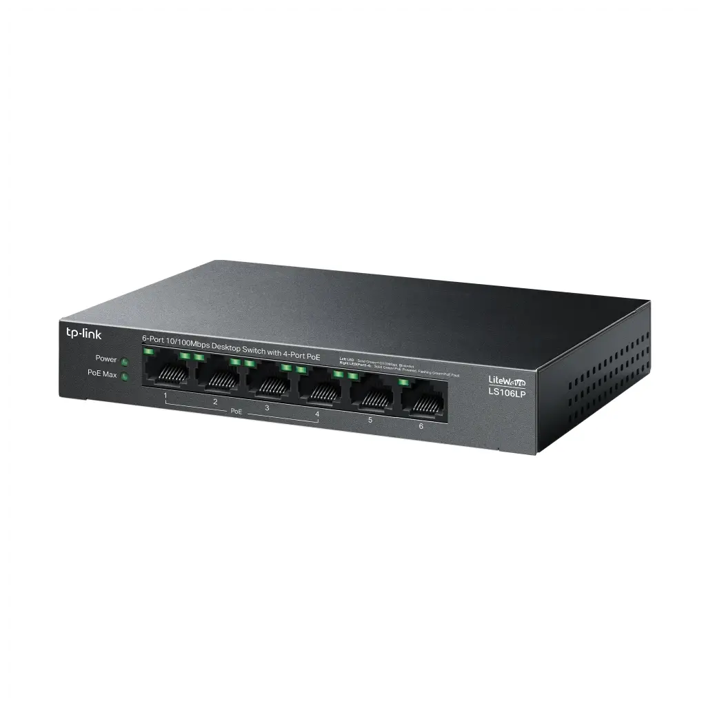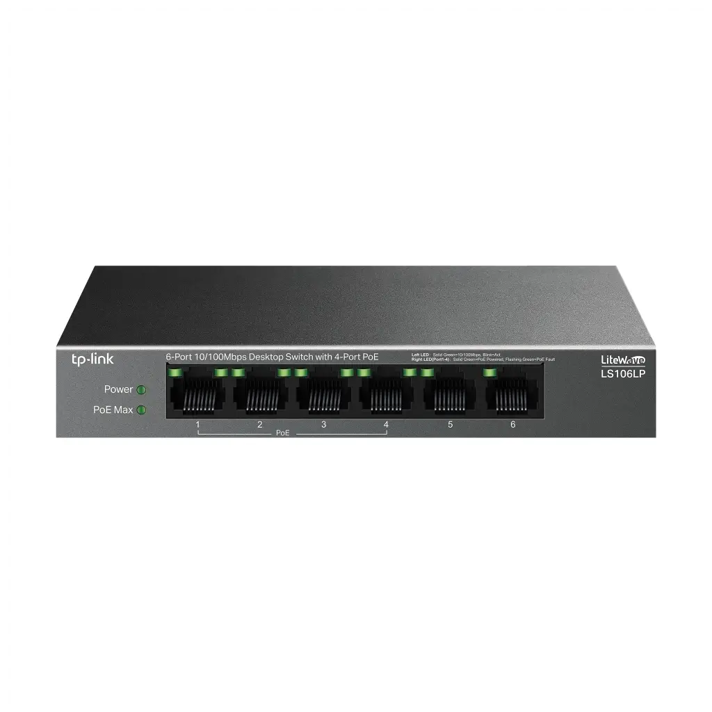 | Arabirim | • 6× 10/100 Mbps RJ45 Ports (4× 10/100 Mbps 802.3af PoE Ports) • AUTO Negotiation • AUTO MDI/MDIX |
