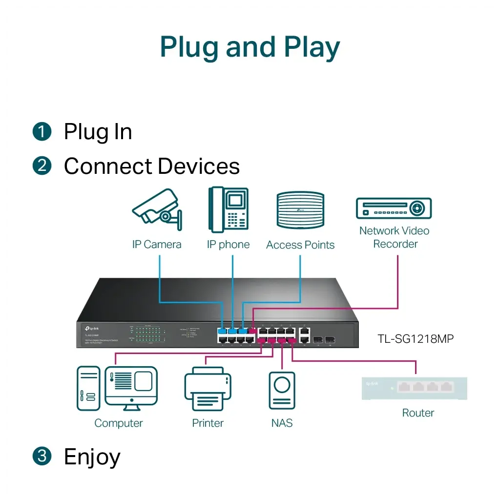 Paket İçeriği | • TL-SG1218MP • Installation Guide • Power Cord • Rackmount Kit • Rubber Feet |