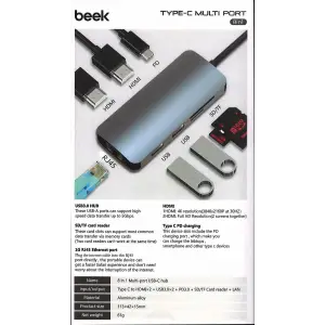 Beek Ba-dck-uc08dh 8'li Usb Type-c Docking Station