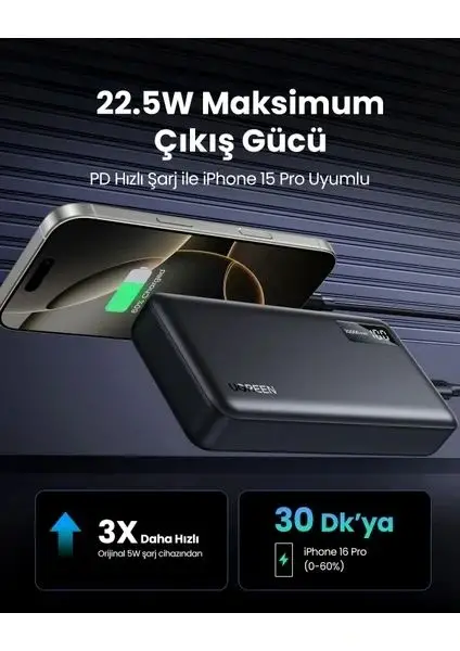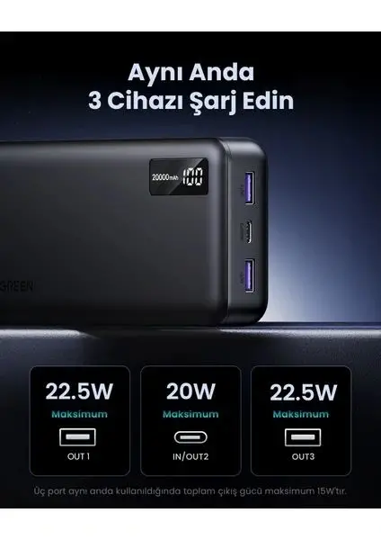 Ugreen 20.000 Powerbank Pd 3.0 2xusb-a 1xusb-c
