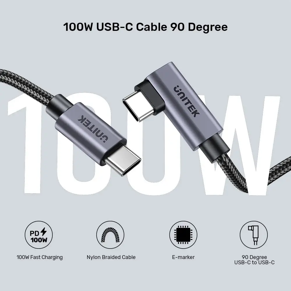 UNITEK TYPE-C HIZLI ŞARJ 90D 2MT 100W(C14123BK-2M)